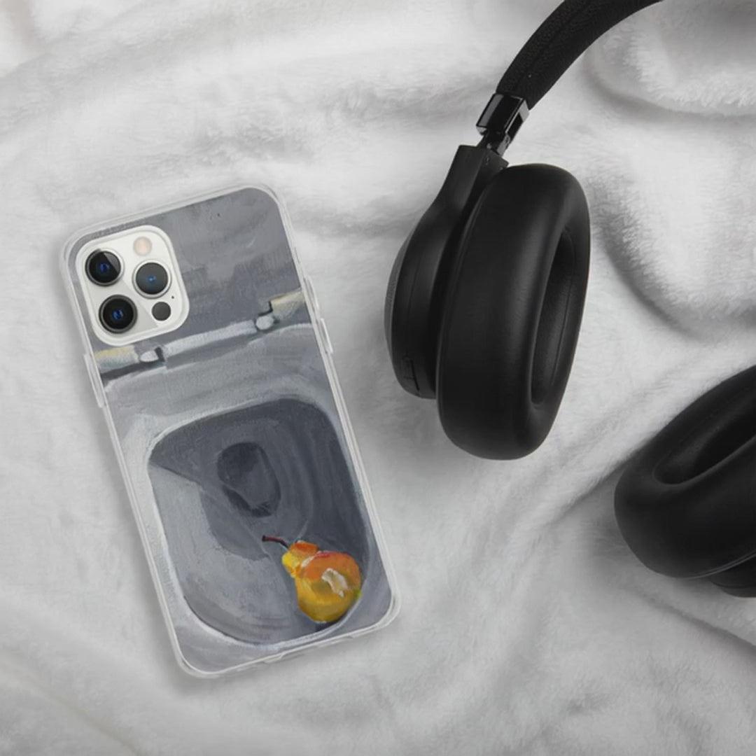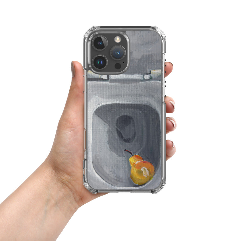 Clear iPhone Case – Contemporary Art with Pear & Toilet Scene | VEER Studio